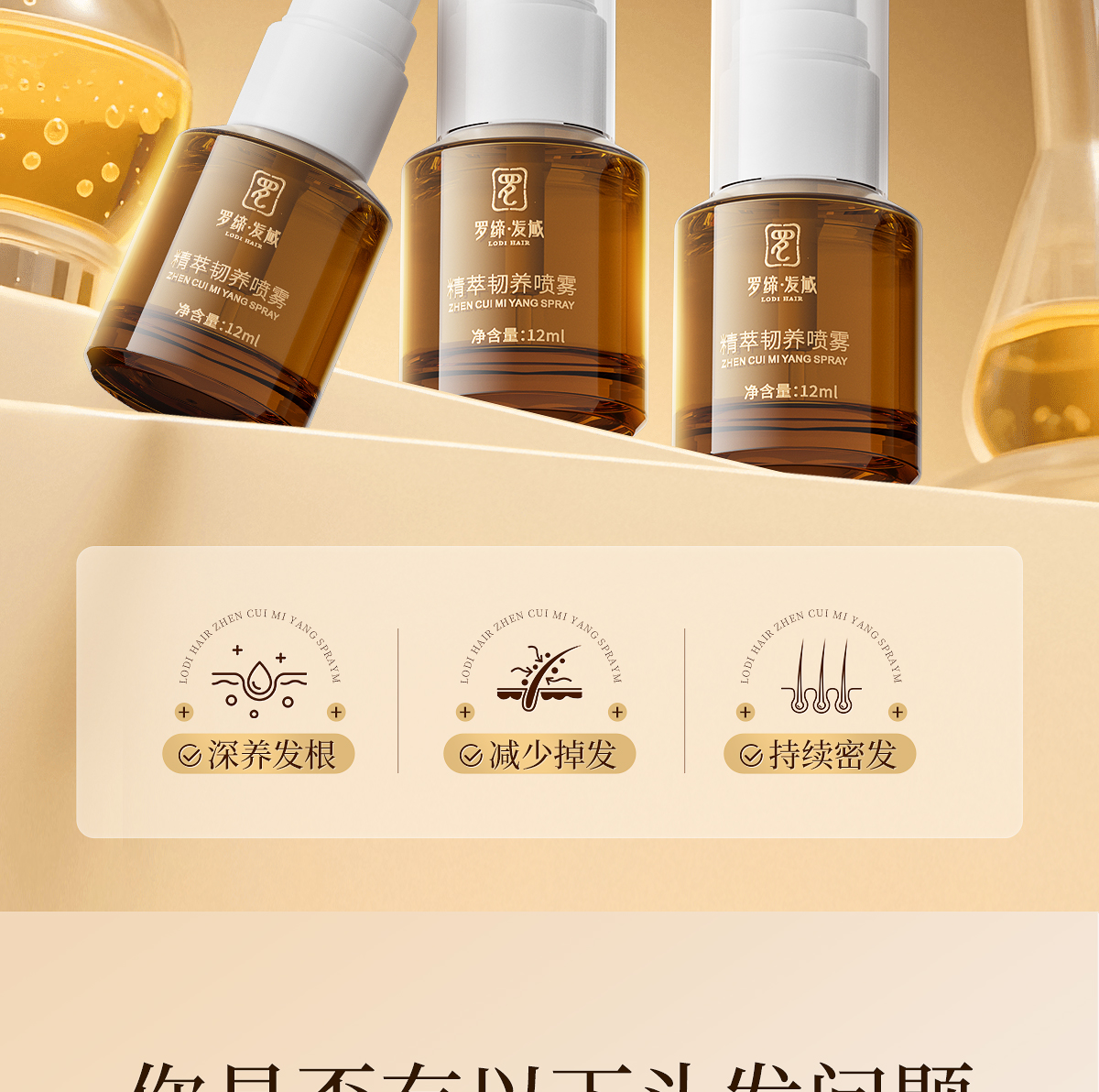 适宜人群:各种类型脱发人群。 作 用:精萃护发成分,滋养修护发丝,改善发丝分叉,减少断发,令秀发柔顺丝滑